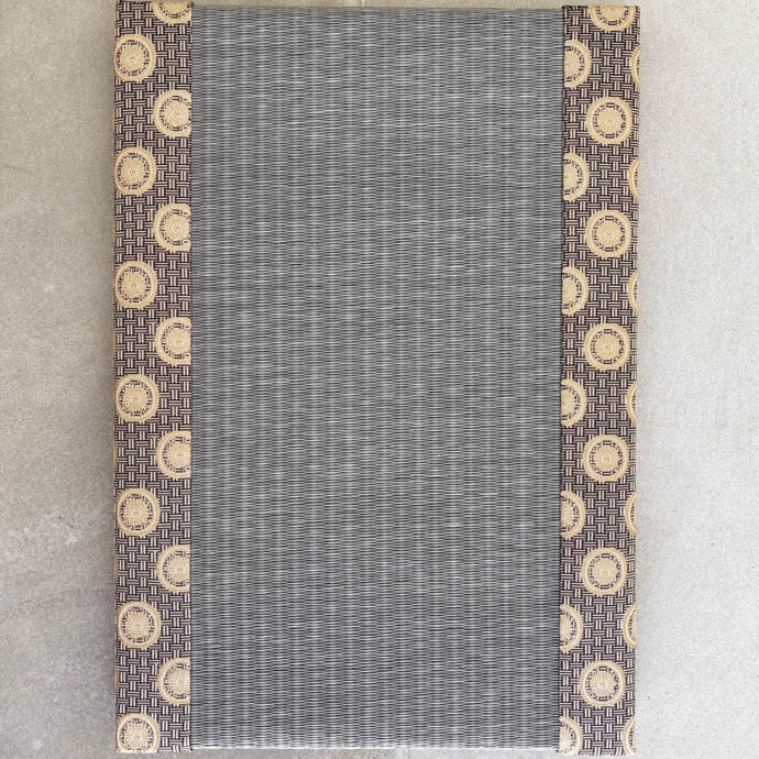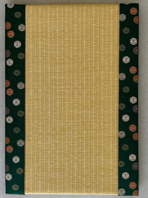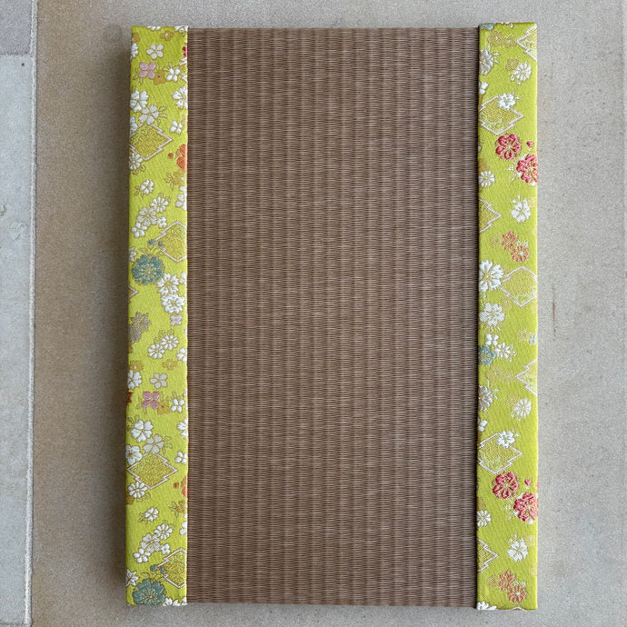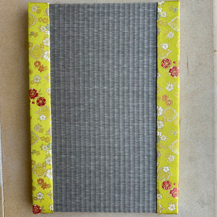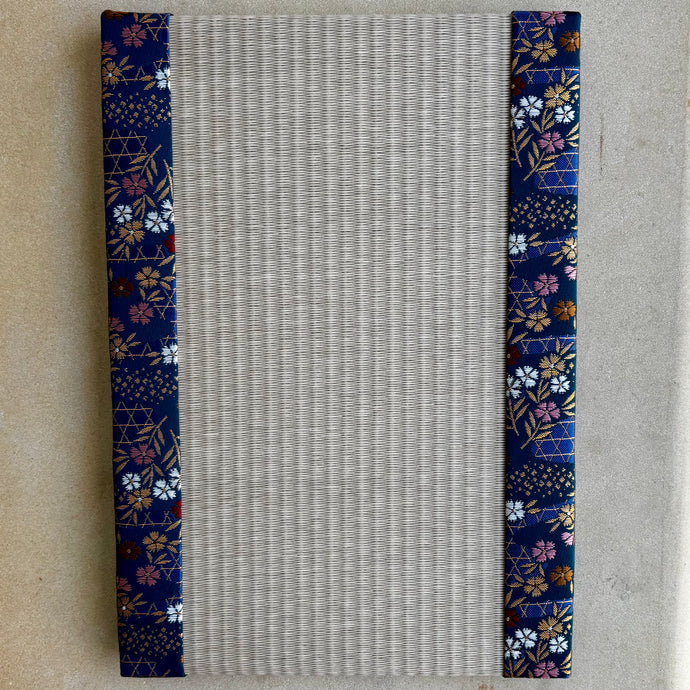 This tatami features a trim made with “Nishijin Kinran (西陣金襴)” fabric from Kyoto. It traditionally adorns Japanese items such as kimono, ceremonial robes, hina dolls, and tea ceremony tools.
